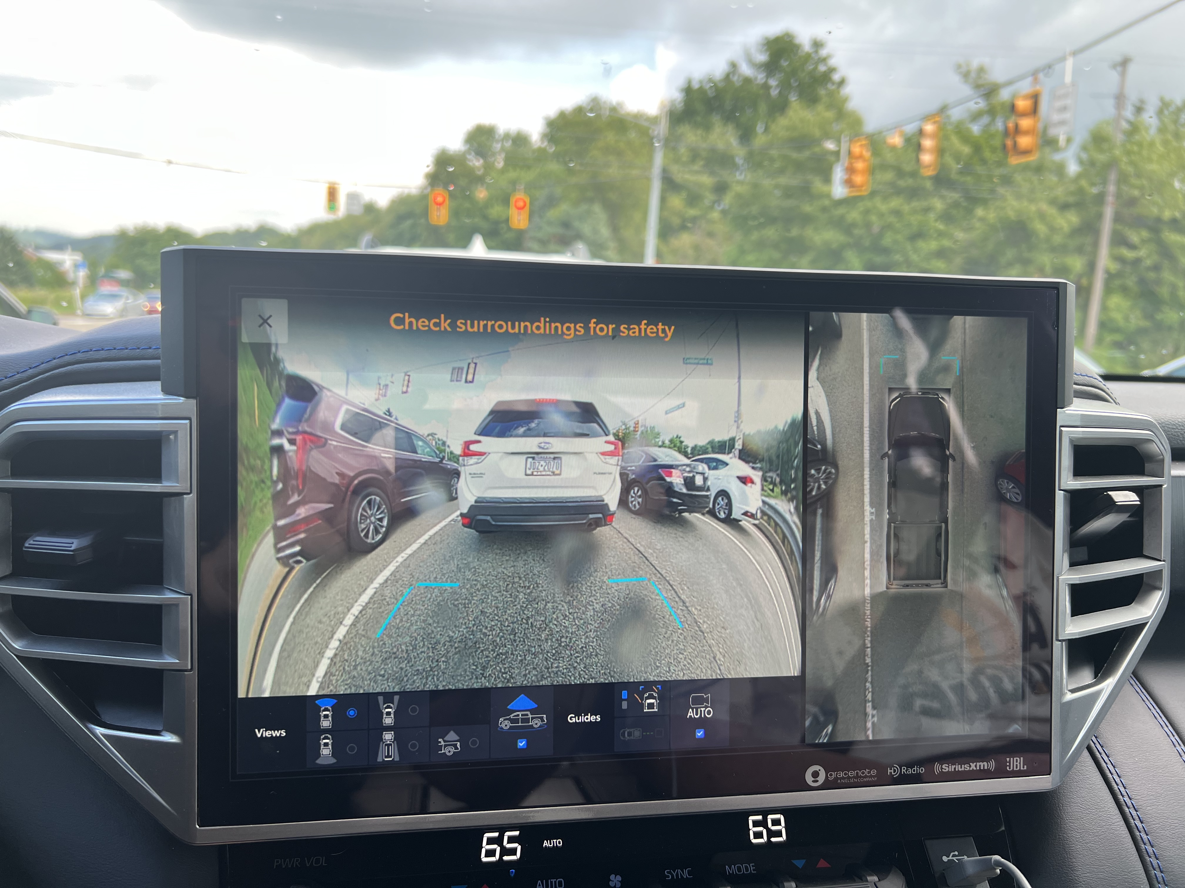 When using Apple CarPlay or Android Auto, it takes over the entire screen giving you the most screen real estate to see your maps, music, or podcasts. My previous vehicles from Stellantis had a bottom navigation bar with CarPlay enabled to allow you to navigate away from CarPlay without having to do anything. Toyota’s implementation, like others I have seen, put a Toyota icon on your homescreen that when tapped, takes you to the built-in vehicle controls. This allows your phone mirroring experience to be more immersive . When the truck’s cameras are activated you again see it fullscreen and are able to see multiple cameras at once. Most of my in-car use is CarPlay so I never use the truck’s built-in functionality so the fullscreen experience was important to me. Hopefully soon Apple updates Carplay to better use the large amount of screen space I have now and make the elements fit better.